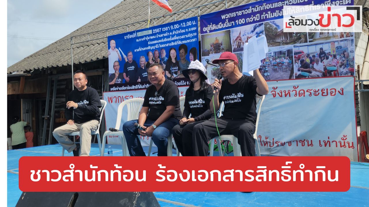 ชาวบ้านในตำบลสำนักท้อน อ.บ้านฉาง จ.ระยอง ตั้งเวทีแสดงพลังร้องเอกสารสิทธิ์ที่ดินทำกิน และขอไฟฟ้าใช้ รวบรวมรายชื่อ สำเนาทะเบียนบ้าน เตรียมยกขบวนบุกทวงถวงรัฐบาล หลังยื่นเรื่องหลายหน่วยงานแต่เงียบ