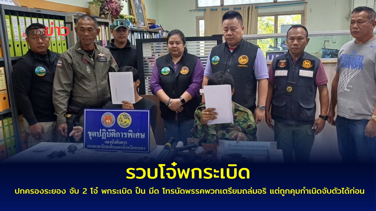 เมื่อเวลา 12.00 น. วันที่ 18 ม.ค.67 นายทัศนเดชา บุญสนธิ์ ป้องกันจังหวัดระยอง ร.ต.อ.สุรเดช มณีพิทักษ์ หัวหน้าชุดเก็บกู้ระเบิด (หน่วยอีโอดี) ภ.จว.ระยอง นายไกรยุทธ วิลาวัลย์ เจ้าพนักงานปกครองชำนาญการ นายอนุรักษ์ สกุลพิทักษ์ เจ้าพนักงานปกครองชำนาญการ ฝ่ายปกครองจังหวัดระยอง นายปิยวัฒน์ วัชรเมฆินทร์ เจ้าพนักงานปกครองปฏิบัติการ ชุดเฉพาะกิจปกครองจังหวัดระยอง ชุดปฏิบัติการพิเศษฝ่ายความมั่นคงจังหวัดระยอง จนท.กองร้อย อส. จังหวัดระยอง ภายใต้การนำของนายไตรภพ วงศ์ไตรรัตน์ ผวจ.ระยอง นายกำธร เวหน รอง ผวจ.ระยอง นายเรืองฤทธิ์ ประกอบธรรม ปลัดจังหวัดระยอง ร่วมกันจับกุมนายพงศ์พิสิฏฐ์ หรือโต้ อายุ 17 ปี ชาว จ.เลย นายเอกพันธ์ หรือเบนซ์ อายุ 31 ปี ชาว จ.ระยอง พร้อมด้วยของกลาง อาวุธปืนไทยประดิษฐ์ ชนิดปืนยาว 2 กระบอก ลูกปืนรถจักรยาน 9 นัด แก๊ปปืน 7 นัด อาวุธมีดดาบยาว 2ด้าม ระเบิดไทยประดิษฐ์ 2 ลูก อาวุธปืนไทยประดิษฐ์ ขนาด .22 จำนวน 1 กระบอก เครื่องกระสุน ขนาด .22 จำนวน 6 นัด เครื่องกระสุน ขนาด .22 แม็กนั่ม จำนวน 1 นัด อาวุธปืนโม่ .38 จำนวน 1 กระบอก และเครื่องซ๊อตไฟฟ้า 1 เครื่อง