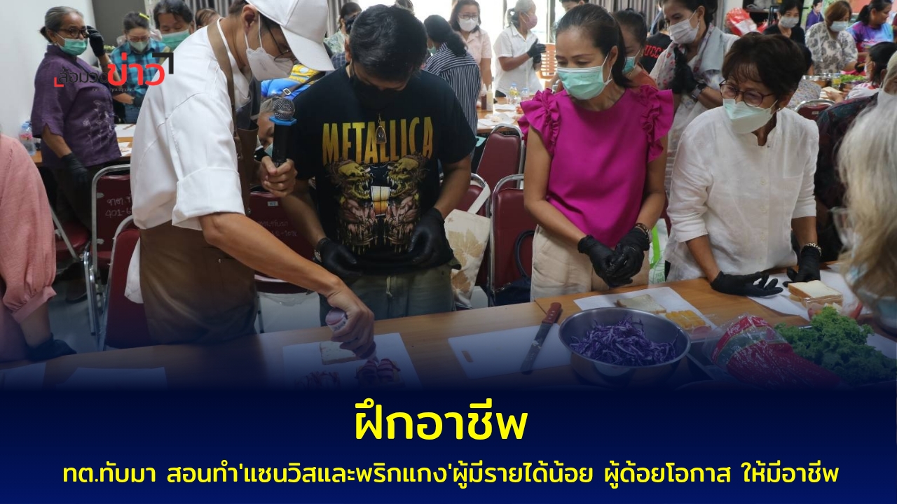 เทศบาลตำบลทับมา สอนทำ ‘แซนวิสและพริกแกง’ สร้างอาชีพให้ผู้มีรายได้น้อย ผู้ด้อยโอกาส ให้มีรายได้ ภายใต้โครงการส่งเสริมคุณภาพชีวิตผู้มีรายได้น้อย ผู้ด้อยโอกาส และไร้ที่พึ่ง