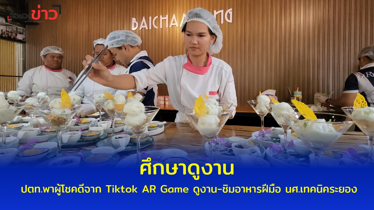 เมื่อเวลา 13.00 น. วันที่ 29 มิ.ย.68 ที่ศูนย์การเรียนรู้อาหารถิ่นระยอง ‘ร้านใบชะมวง’ วิทยาลัยเทคนิคระยอง ต.ท่าประดู่ อ.เมือง จ.ระยอง นายกิตติพงค์ อุตตมะเวทิน ผอ.วิทยาลัยเทคนิคระยอง นางณัฐธารีย์ สิริกุลปัญญาพร นายชาคริต รุ่งรัตน์ รอง ผอ.วิทยาลัยเทคนิคระยอง ให้การต้อนคณะจาก บ.ปตท. จำกัด (มหาชน) ที่ได้นำผู้โชคดีจากกิจกรรม Tiktok AR Game #หรือฉันก็เป็นเอเลี่ยน ซึ่งจัดขึ้นเพื่อให้มีส่วนร่วมในการเปลี่ยนโลกได้จริง เพื่อโลกที่ยั่งยืนอย่างสมดุล มุ่งสู่เป้าหมาย Net Zero ลดการปล่อยก๊าซเรือนกระจกสุทธิเป็นศูนย์ ภายในปี 2050 ได้เดินทางมาศึกษาดูงานศูนย์การเรียนรู้อาหารถิ่นระยอง ‘ร้านใบชะมวง’ ของวิทยาลัยเทคนิคระยอง พร้อมชิมเมนูเด็ดทางร้าน ประกอบด้วย ผัดไทยโรล, กระทงทองพล่ากุ้ง, ข้าวสวยหอมมะลิ, แกงหมูชะมวง, ผัดขี้เมาไก่ใส่หน่อกะทือ, ต้มจืดทะเล, น้ำพริกไข่ปู และไอศกรีมรวมมิตร