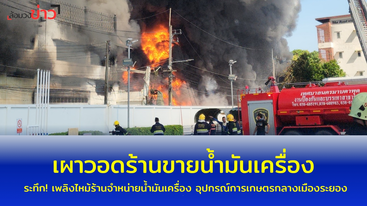 เมื่อเวลา 07.45 น. วันที่ 3 ต.ค.68 ร.ต.อ.ทองดาว โคตรหลักคำ รอง สว.(สอบสวน)สภ.เมืองระยอง ได้รับแจ้งเหตุเพลิงไหม้ร้านจำหน่ายน้ำมันเครื่อง อุปกรณ์การเกษตร และเครื่องมือช่างกลางเมืองระยอง ตั้งอยู่ริมถนนสายสุขุมวิท(นครระยอง 29) เขตเทศบาลนครระยอง อ.เมืองระยอง จึงแจ้งเจ้าหน้าที่ดับเพลิงเทศบาลนคระยอง ระดมรถดับเพลิงนับ 10 คัน เข้าระงับเหตุ โดยที่เกิดเหตุพบต้นเพลิงอยู่บริเวณโกดังเก็บสินค้าประเภทน้ำมันเครื่อง อุปกรณ์การเกษตร ปั๊มน้ำ เครื่องมือช่างซึ่งเป็นโกดังที่เชื่อมต่อจากหน้าร้านลึกเข้าไปด้านหลัง โดยเพลิงได้ลุกไหม้โหมอย่างรุนแรง ควันไฟพวยพุ่งขึ้นท้องฟ้าจนมองเห็นได้ในระยะไกล โดยมีเสียงระเบิดดังขึ้นเป็นระยะๆ ซึ่งขณะนี้ยังไม่สามารถควบคุมเพลิงไว้ได้ โดยจุดเพลิงไหม้เป็นจุดเก็บน้ำมันเครื่องนับหมื่นลิตร ซึ่งเป็นเชื้อเพลิงอย่างดี โดยเจ้าหน้าที่ได้ระดมฉีดน้ำดับเพลิงแต่ยังไม่สามารถดับเพลิงได้ นอกจากนี้เจ้าหน้าดับเพลิงยังได้ฉีดน้ำเลี้ยงจุดเก็บถังน้ำมันของปั๊มน้ำมันแห่งหนึ่งที่อยู่ติดโกดังเพลิงไหม้ด้วย โดยพบว่าใต้ดินเป็นถังเก็บน้ำมัน จำนวน 4,500 ลิตร โดยล่าสุดพบเพลิงไหม้ได้ลามติดหน้าร้านแล้ว