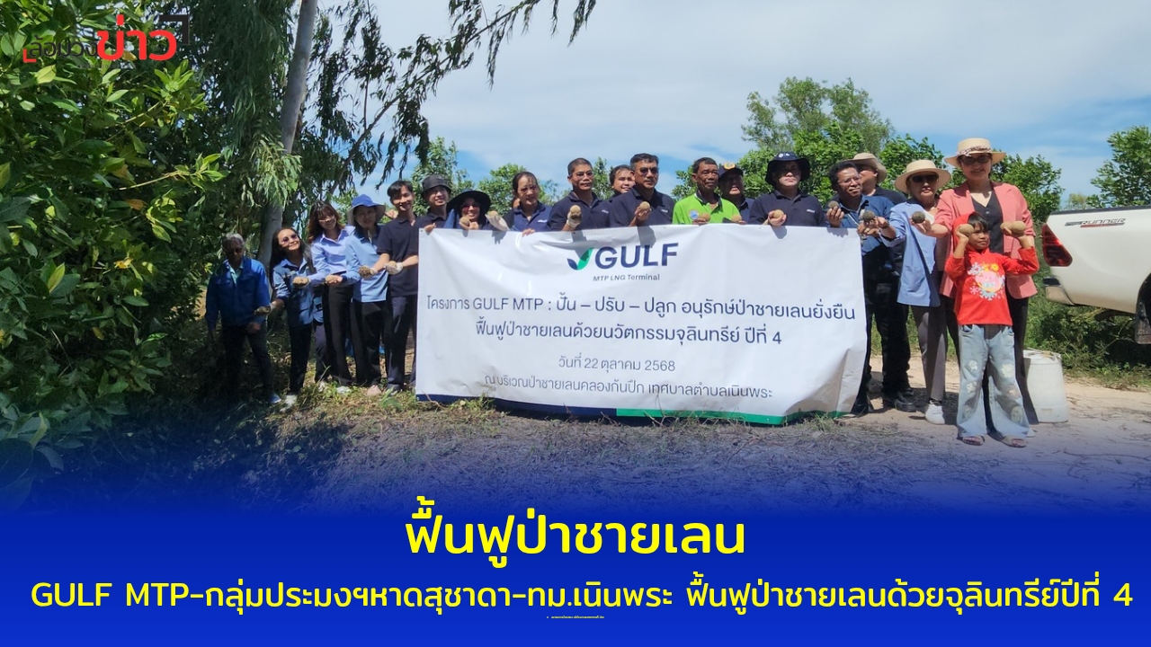 วันที่ 22 ตุลาคม 2568 ณ เทศบาลเมืองเนินพระ จ.ระยอง มีการเปิดโครงการ : ฟื้นฟูป่าชายเลนด้วยจุลินทรีย์ ปีที่ 4 โดย บริษัท กัลฟ์ เอ็มทีพี แอลเอ็นจี เทอร์มินอล จำกัด (GULF MTP) โครงการท่าเทียบเรือขนถ่ายก๊าซธรรมชาติ โครงการสถานีเก็บรักษาและแปรสภาพก๊าซธรรมชาติ ในพื้นที่พัฒนาท่าเรืออุตสาหกรรมมาบตาพุด ระยะที่ 3 พร้อมด้วย บริษัท พอสโก อีโค แอนด์ แชลเลนจ์ คอมปานี ลิมิเต็ด จำกัด และบริษัท ซีเอแซด ประเทศไทย และ สำนักงานท่าเรืออุตสาหกรรมมาบตาพุด (สทร) เดินหน้าจัดกิจกรรมต่อเนื่องในโครงการ “ฟื้นฟูป่าชายเลนด้วยนวัตกรรม ปี 4” ร่วมกับวิสาหกิจชุมชนกลุ่มประมงเรือเล็กหาดสุชาดา และ เทศบาลเมืองเนินพระ จ.ระยอง โครงการนี้ นำโดย ดร.กฤษณ์ พงษ์เทพิน ผช.ผอ.ฝ่ายชุมชนสัมพันธ์ กลุ่มบริษัท GULF ( วิทยากรส่งเสริมฯ) และนายศุภฤกษ์ โสภณราพงษ์ ผช.ผู้จัดการฝ่ายชุมชนสัมพันธ์ GMTP ผู้รับผิดชอบโครงการฯ ร่วมกับนายลำเพย แว่วเสียง ประธานวิสาหกิจชุมชนกลุ่มประมงเรือเล็กหาดสุชาดา เทศบาลเมืองเนินพระ จ.ระยอง โดยได้รับเกียรติจากนายศุภชัย จิตรดล นายกเทศบาลเมืองเนินพระ อ.เมืองระยอง จ.ระยอง เป็นประธานในกิจกรรมครั้งนี้ ซึ่งมีผู้เข้าร่วมกิจกรรมจากชุมชน หน่วยงานหลายภาคส่วน และสื่อมวลชน จ.ระยองกว่า 100 คน