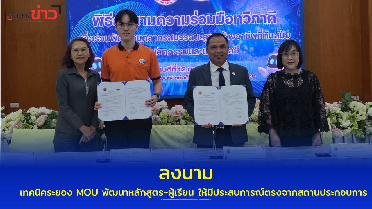 เมื่อเวลา 13.30 น. วันที่ 12 ก.พ.69 ที่ห้องประชุมสัมมนาอาชีวศึกษา ชั้น 3 วิทยาลัยเทคนิคระยอง อ.เมือง จ.ระยอง ผู้สื่อข่าวรายงานว่า นายกิตติพงค์ อุตตมะเวทิน ผอ.วิทยาลัยเทคนิคระยอง ร่วมลงนาม MOU กับนางรัชนี ศิริสกุลงาม กรรมการผู้จัดการ และนายนพรุจ ธนภัทรชัยทัต ผู้ช่วยกรรมการผู้จัดการ 1 บริษัทแต้ล้งฮั้ว (TLH) 95 กรุ๊ป จำกัด บริษัทผู้เชี่ยวชาญกระจก-ฟิล์มรถยนต์ในจังหวัดระยอง ในความร่วมมือ ‘การจัดการศึกษาอาชีวศึกษาระบบทวิภาคี วิทยาลัยเทคนิคระยอง เพื่อร่วมพัฒนาคนสมรรถนะสูง สร้างอาชีพที่ทันสมัยด้วยนวัตกรรมและเทคโนโลยี’ โดยมีนางณัฐธารีย์ สิริกุลปัญญาพร นายชรินทร์ ชู่ชื่น นายอานุภาพ วาสะสิริ รอง ผอ. วิทยาลัยเทคนิคระยอง ครู ร่วมเป็นสักขีพยาน ทั้งนี้ การลงนามดังกล่าว มุ่งพัฒนาผู้เรียนให้มีความรู้ ทักษะ และประสบการณ์ตรงจากสถานประกอบการ ซึ่งจะสอดคล้องกับความต้องการของตลาดแรงงานและการเปลี่ยนแปลงของเทคโนโลยีในยุคปัจจุบัน โดยความร่วมมือของทั้ง 2 ฝ่ายนี้ จะมีการร่วมกันพัฒนาหลักสูตร สนับสนุนการฝึกประสบการณ์วิชาชีพ การแลกเปลี่ยนองค์ความรู้ การใช้ทรัพยากรด้านวิชาการและเทคโนโลยีร่วมกัน ตลอดจนการจัดกิจกรรมเสริมทักษะด้านนวัตกรรม เพื่อยกระดับศักยภาพของนักเรียน นักศึกษาให้พร้อมสู่โลกการทำงานอย่างมีคุณภาพต่อไป.